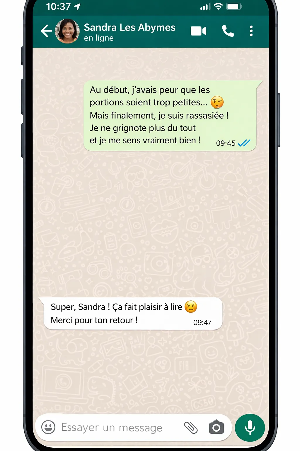 mais j’ai été rassasiée. Je ne grignote plus et je me sens beaucoup mieux.”